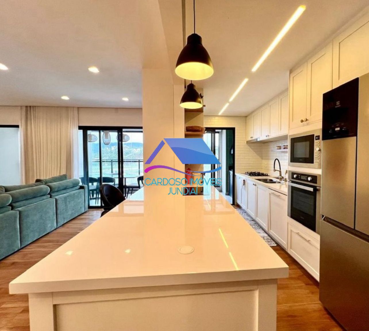 A área social é integrada e conta com varanda gourmet com fechamento em vidro, ideal para momentos de lazer e convivência.