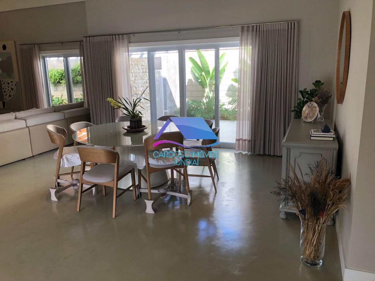 Elegante, espaçosa e confortável casa térrea da Alameda Cerejeiras, 131 no Terras de São Carlos à venda com acabamentos finos e naturais. A mobília elegante e moderna e os itens de decoração (com poucas exceções de caráter pessoal/familiar) acompanham a casa para que o comprador possa usufruir do conforto de um lar planejado em cada detalhe.